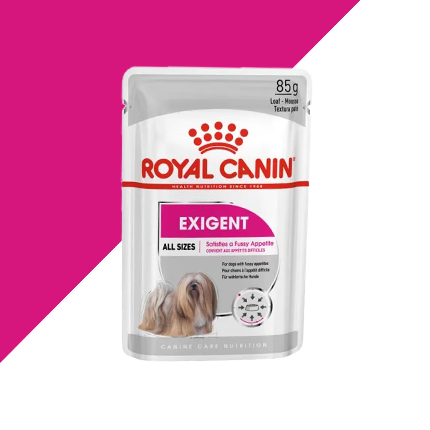 غذای پوچ سگ مینی اگزیجنت رویال کنین (Royal Canin Mini Exigent Wet Food) با وزن 85 گرم محصولی است که به واسطه ترکیبات خوش طعم و لذیذی که دارد اشتهای این سگ های نژاد کوچک را به خورن غذا بر می انگیزد. سگ های نژاد Mini Exigent از نظر غذایی بسیار مشکل پسند و بد غذا بوده و تمایل زیادی به خوردن هر گونه ماده غذایی ندارند. از این رو می توان برای ترغیب آنها به خوردن غذا از این محصول شرکت رویال کنین استفاده نمود.