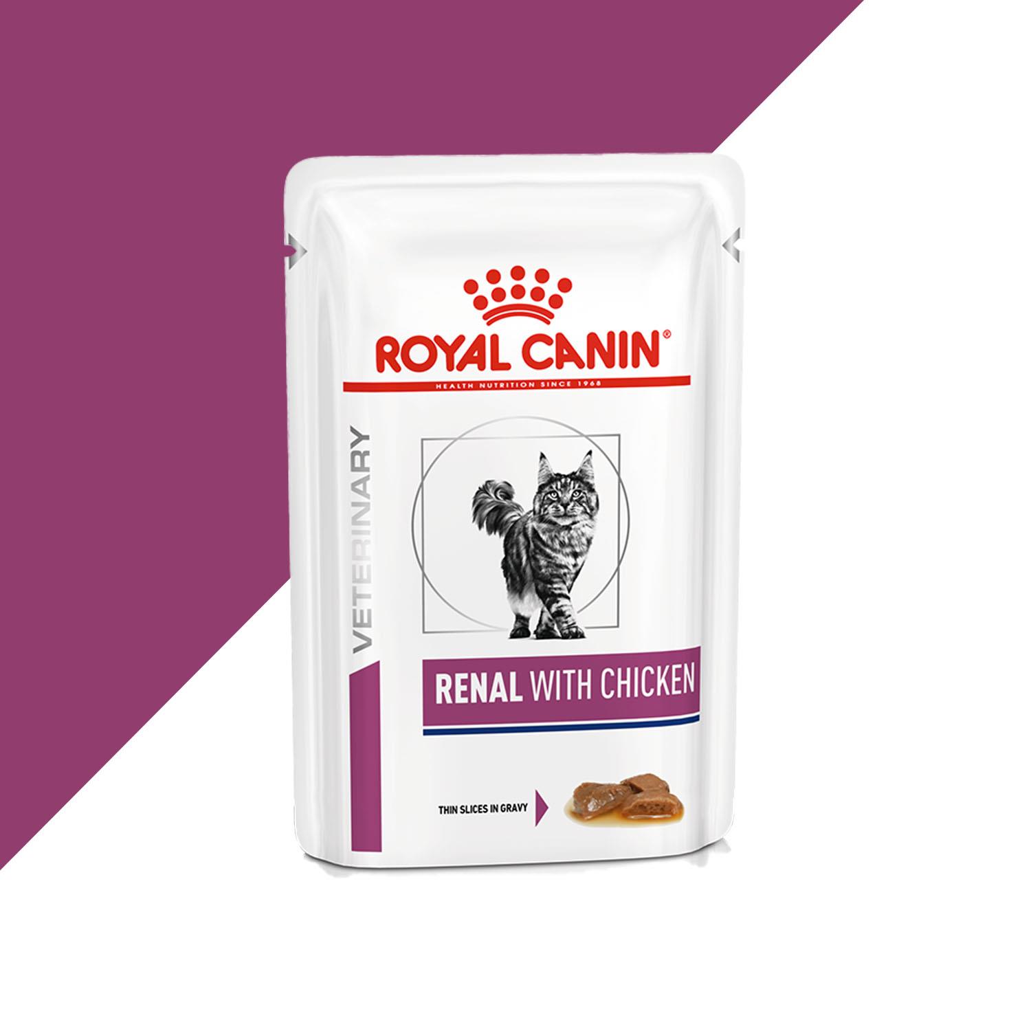 پوچ گربه رویال کنین رنال با طعم مرغ مخصوص گربه ها با مشکلات کلیوی بوده که یک وعده غذایی کامل و مقوی بوده که بسیار سبک و خوشمزه است و در بین گربهها بسیار مورد محبوب است.