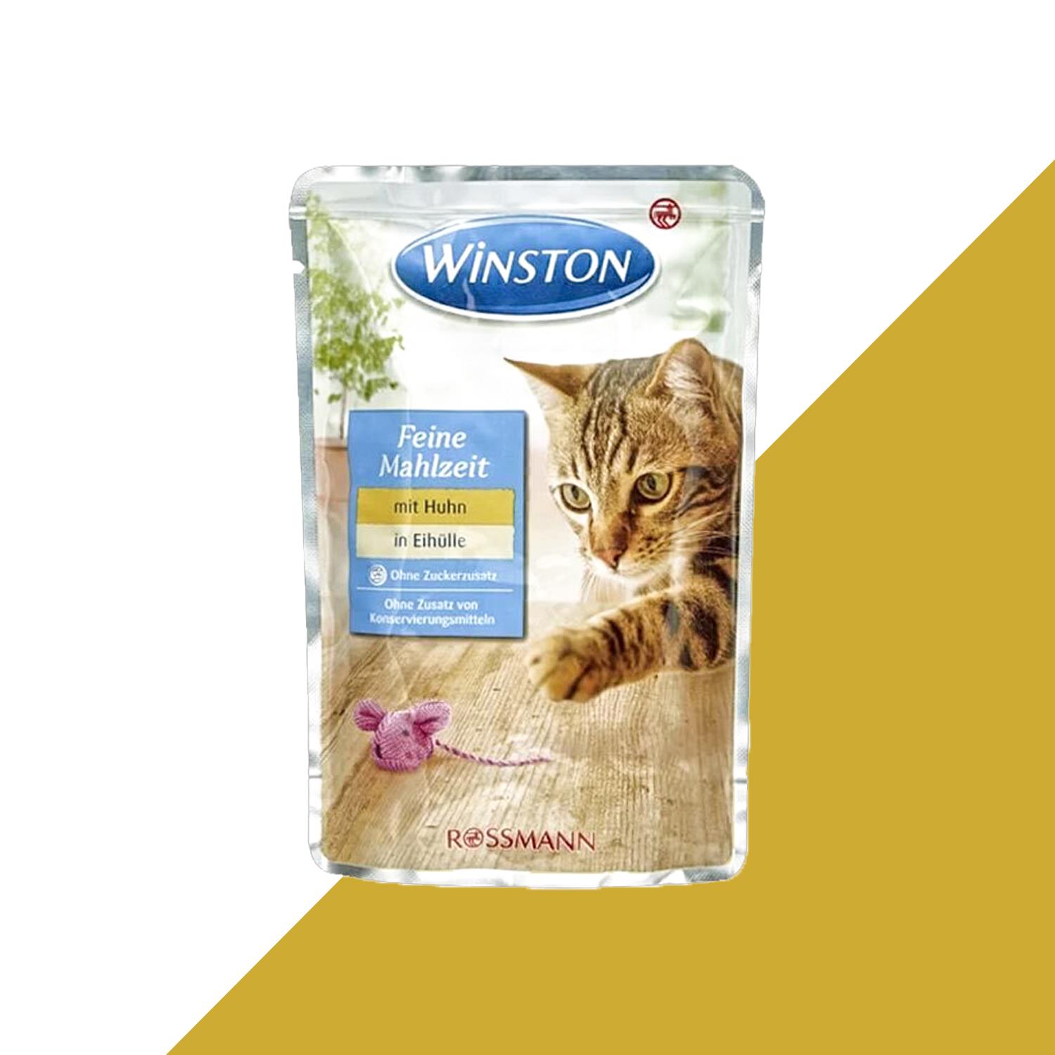 پوچ گربه وینستون طعم مرغ و تخم مرغ برای گربه های بالغ بد غذا تولید شده؛ غنی از تورین و بیوتین و فاقد قند، رنگ و مواد نگهدارنده است. از آنجا که گربه ها تمایل کمتری به مصرف آب دارند و بیشتر آب مورد نیاز بدن خود را از طریق غذا تامین می کنند، استفاده از غذای مرطوب، از جمله غذای پوچ برای آنها بسیار مناسب است. این نوع غذاها با رطوبت بالایی که دارند، موجب آبرسانی بهتر به بدن گربه می شوند.